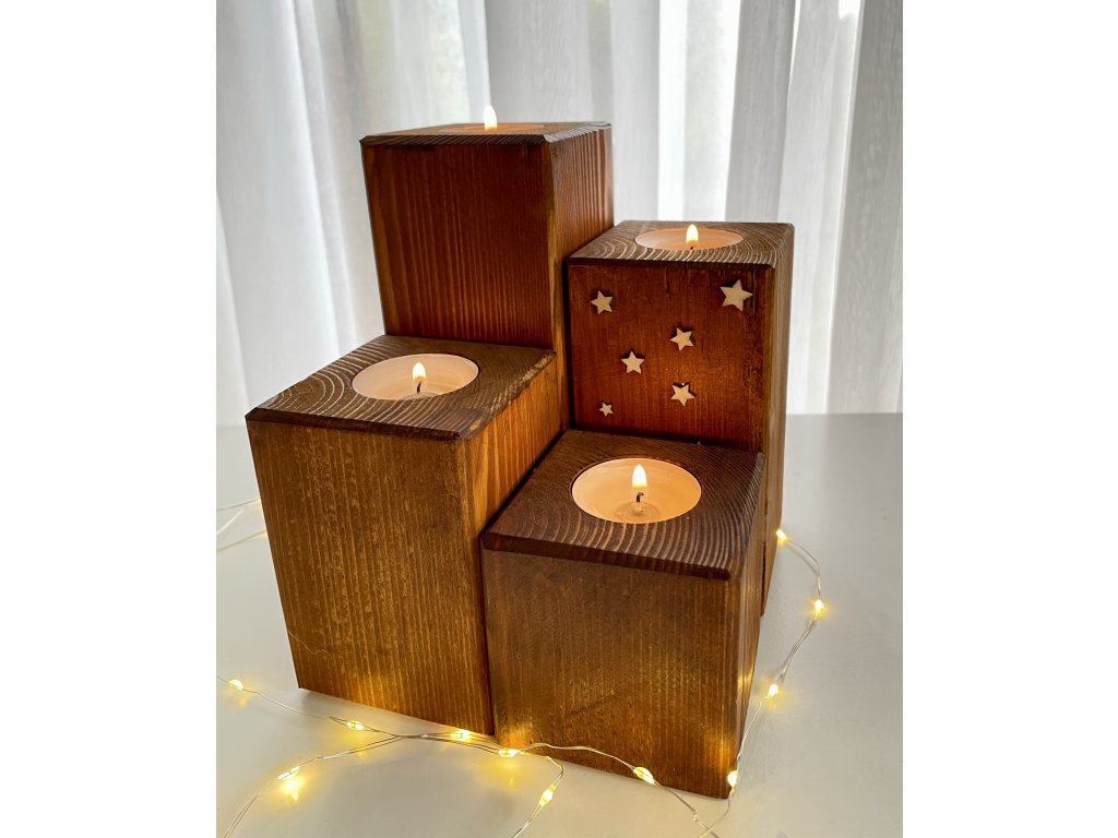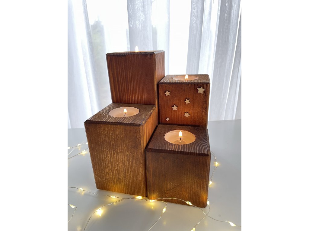 Každý svícen má čtyři svícny, každý v jiné velikosti, vytvořené s láskou z kvalitního smrkového dřeva.