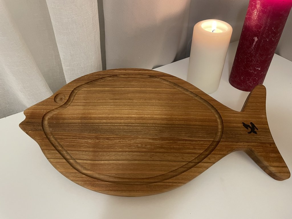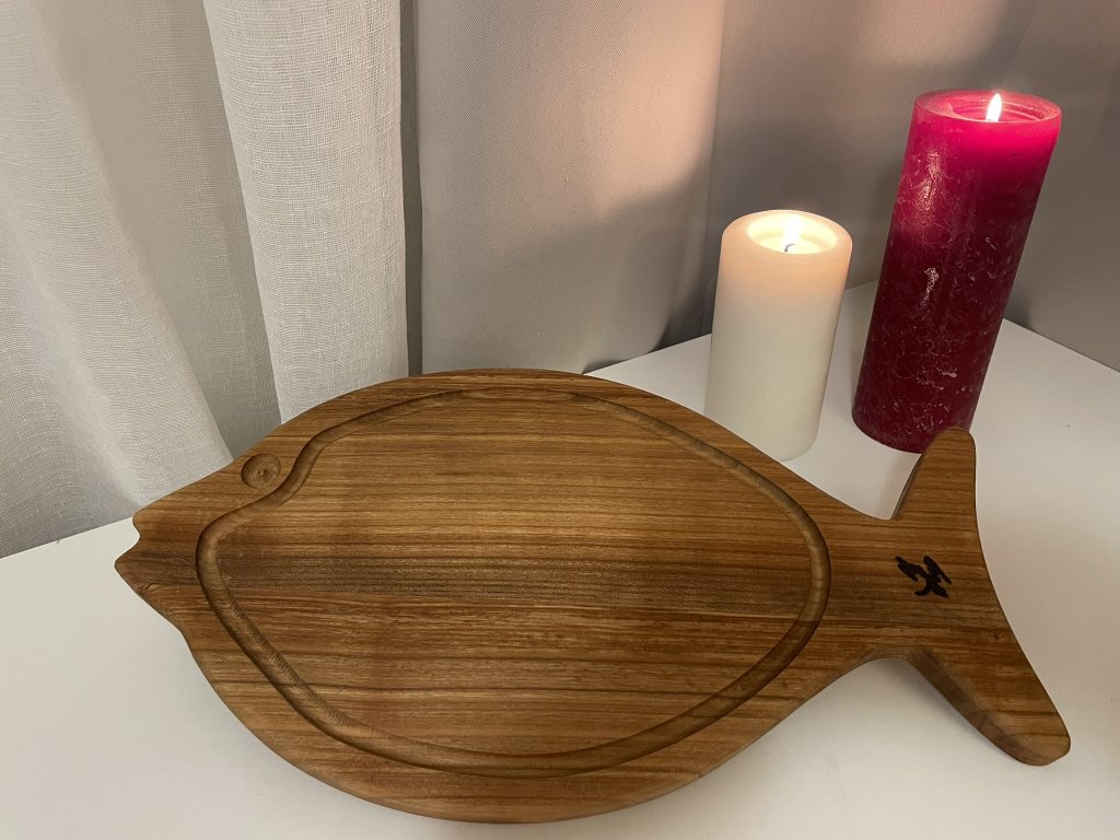 Vytvořte kouzelnou atmosféru ve vašem domově s tímto prkénkem ve tvaru kapra. Vyrobený z kvalitního třešňového dřeva. Prkénko je nejen praktickým doplňkem, ale i krásným designovým prvkem, který ozdobí každou místnost.