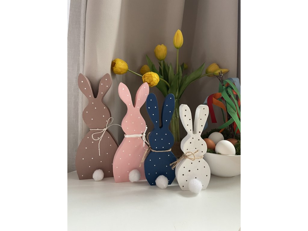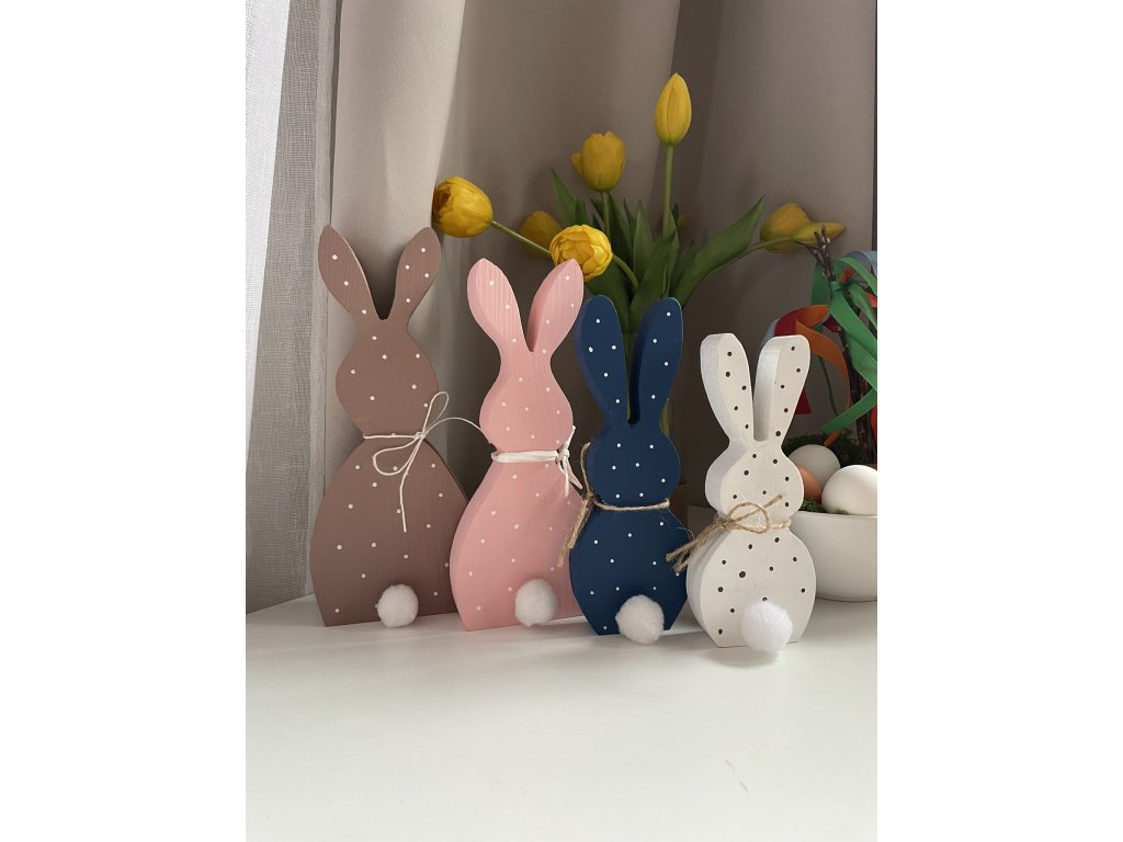 Velikonoční zajíčci s puntíky a bambulkou, vyrobené z přírodní borovice, těší nejen svou jedinečností, ale i příjemnou vůní dřeva, která naplní váš prostor. Tito roztomilí zajíčci v setu jsou pokryty drobnými roztomilými puntíky.
